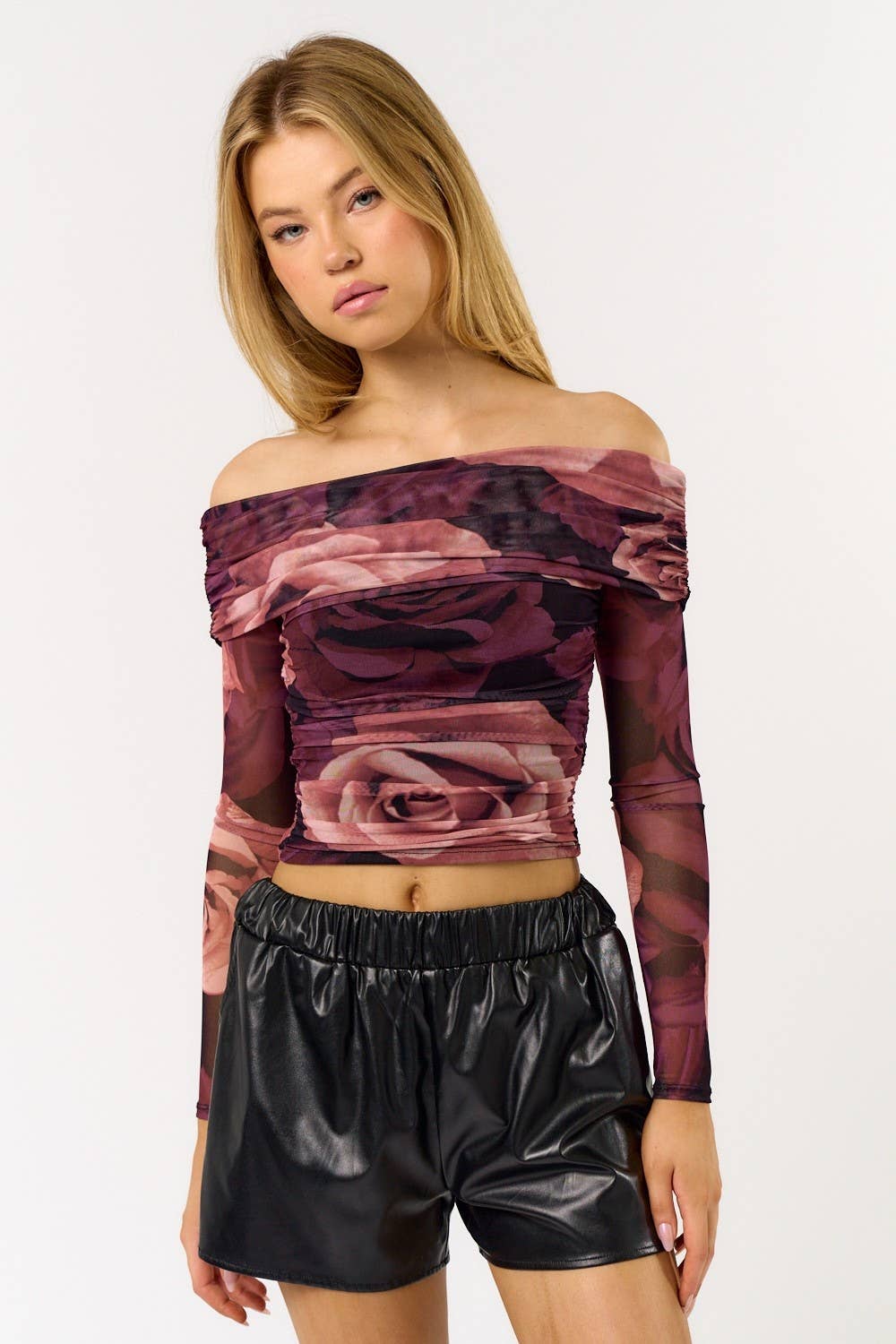 Tags: Mesh Off Shoulder Top, Printed Mesh, Summer Mesh Style, Sheer Top, Trendy Going Out Look, Festival Fashion, Off Shoulder Vibe, Flirty Mesh Top, Y2K Inspired, Lightweight Layering