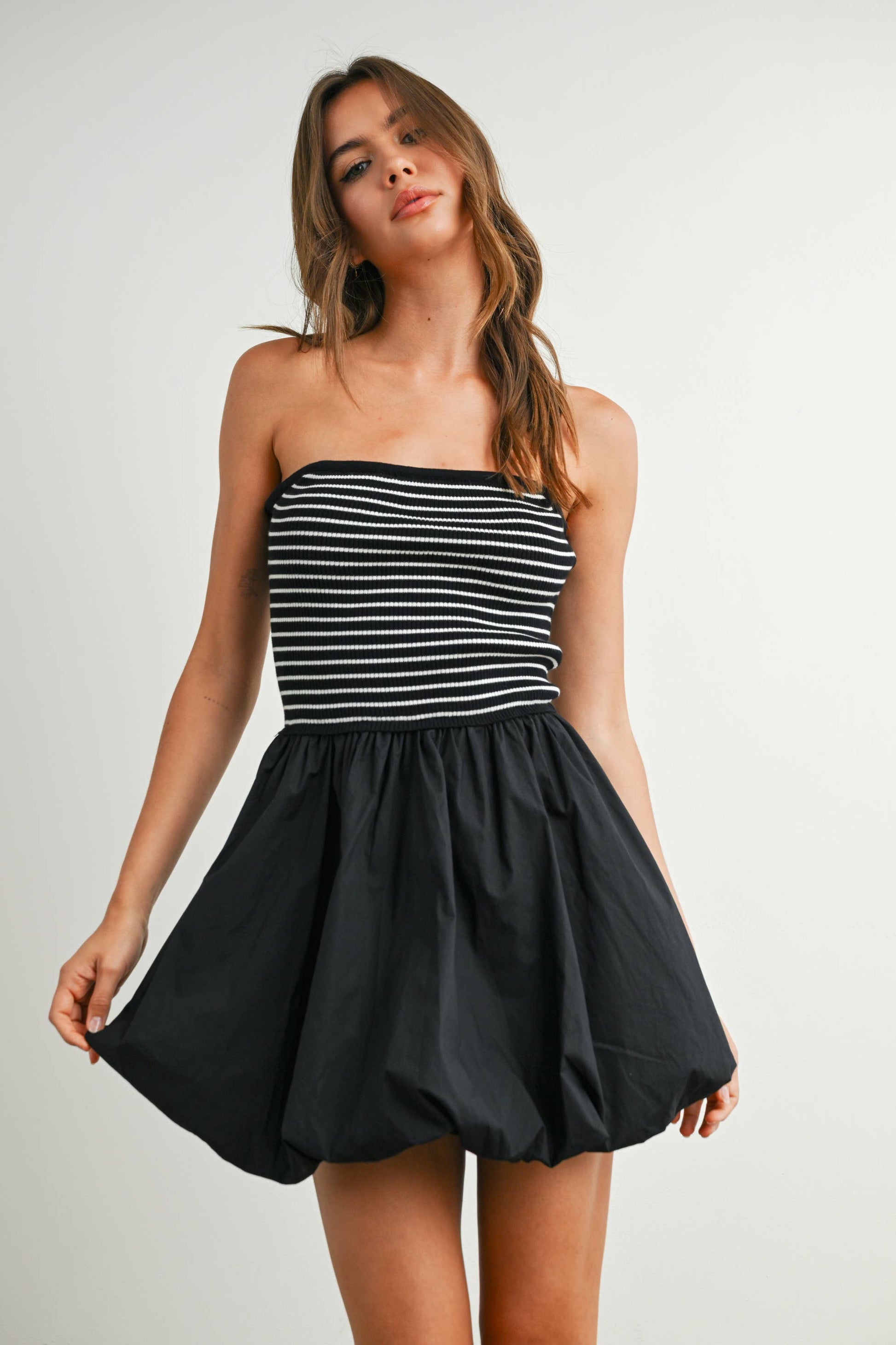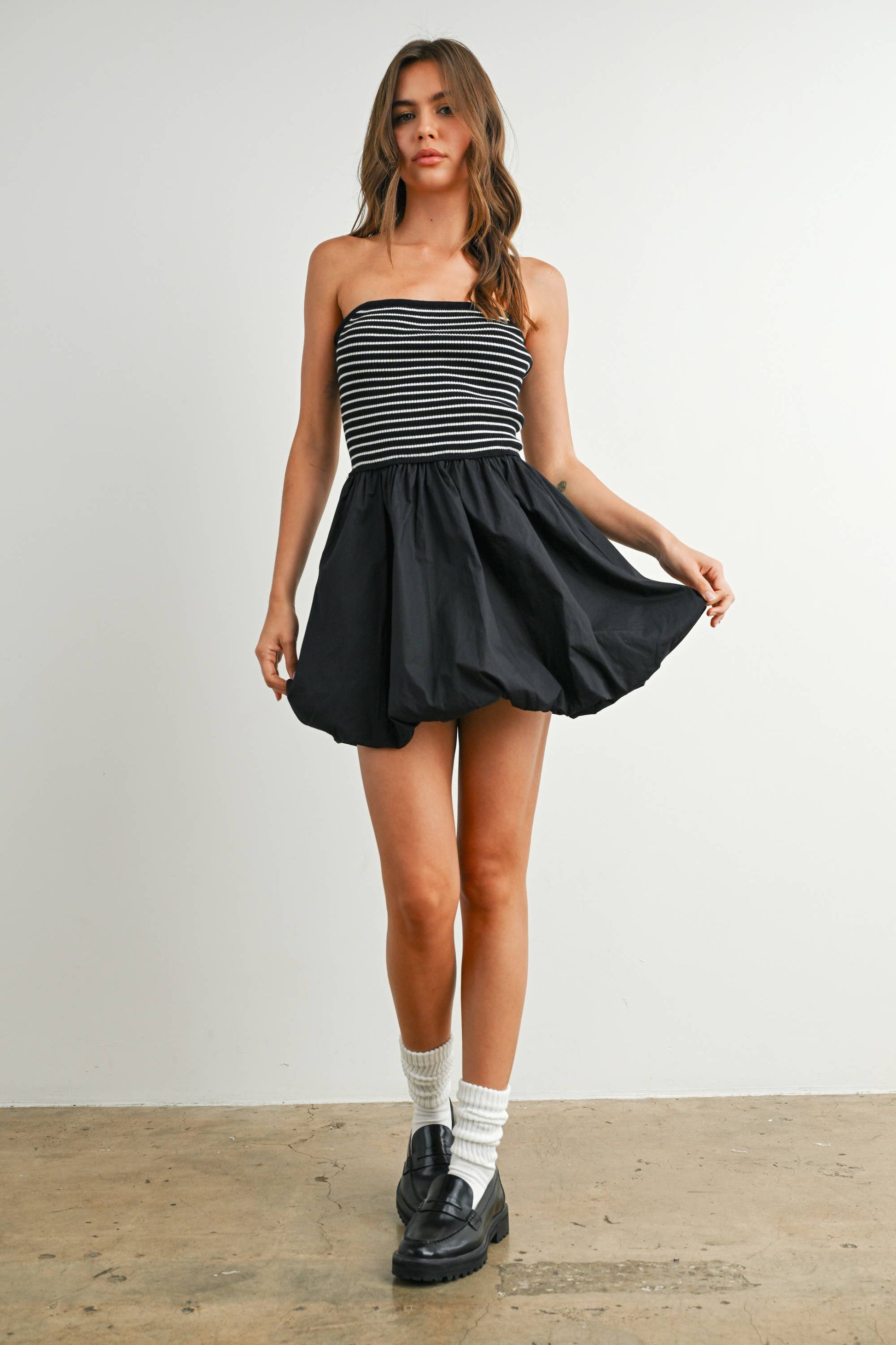 chic and playful Bubble Hem Mini dress. Designed with a Perfect for dressing up with heels or keeping it casual with sneakers.